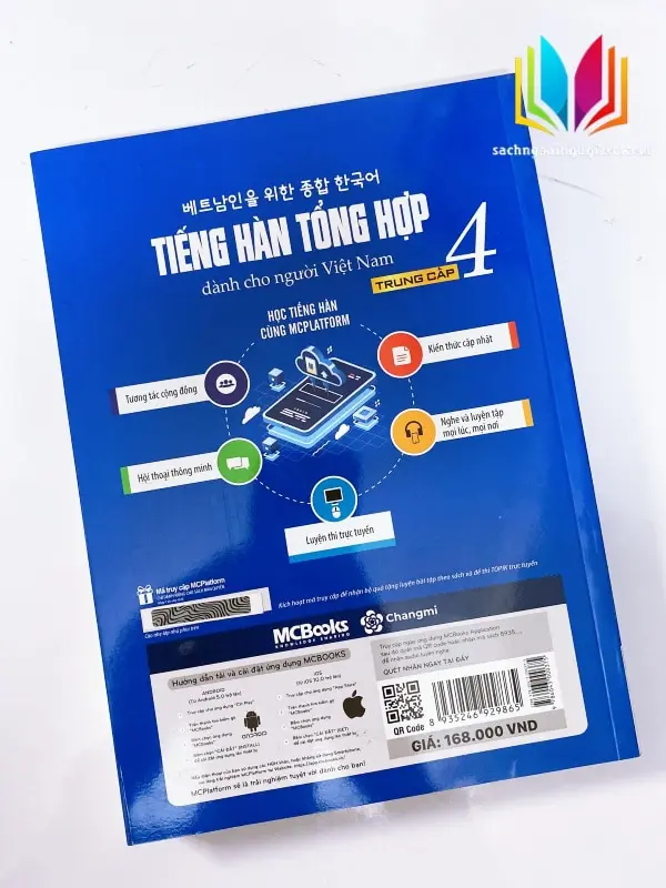 Tiếng hàn trung cấp 4 (bản mới) có hai bản màu và đen trắng phù hợp với nhu cầu người học. Giáo trình biên soạn kèm sách bài tập nhằm hỗ trợ người học trong quá trình ôn luyện kiến thức từ giáo trình, ghi nhớ ngữ pháp, từ vựng và biết ứng dụng những nội dung mình đã học. Đồng thời APP MCBooks là công cụ hữu ích giúp người học có thể học mọi lúc mọi nơi.